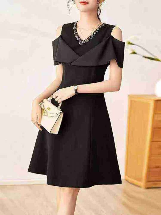 法式赫本风高级感小黑裙V领修身显瘦包臀裙2025夏季新款连衣裙全清价6.5,数...