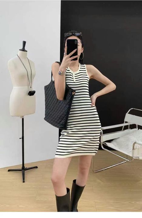 夏季新款条纹简约休闲无袖背心连衣裙,独立包装,均码面料柔软舒适弹力大,...