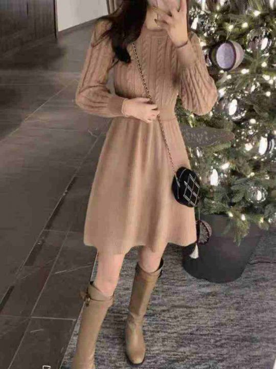 ① 法式复古针织秋冬装网红辣妹风超仙女长款毛衣裙!独立包装,两个颜色,...