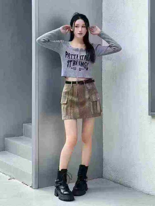 杭州品牌复古工装牛仔短裙裤夏季新款小众设计感女装短款辣妹高腰显瘦做旧A...