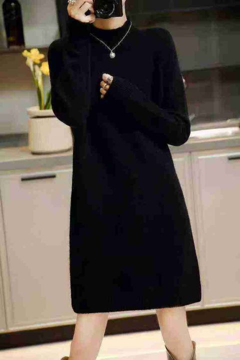 秋冬新款圆领针织长袖中长款针织裙显瘦百搭打底裙,独立包装,均码,500件...