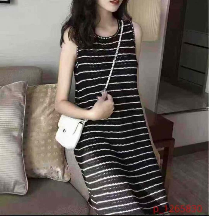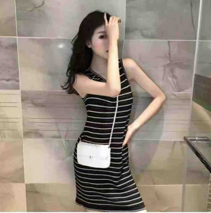 夏季新款撞色条纹针织背心连衣裙,独立包装,均码面料柔软舒适弹力大,109...