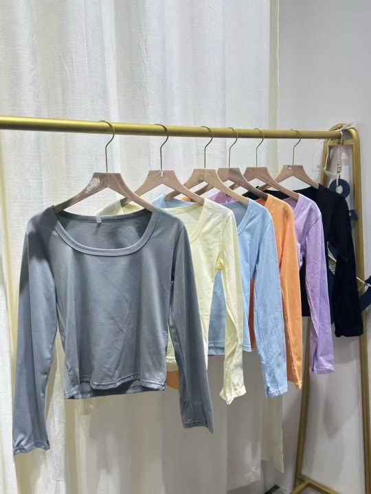 修身纯欲U领纯棉打底衫吊带裙内搭长袖T恤女紧身大领口上衣春秋季,数量489...