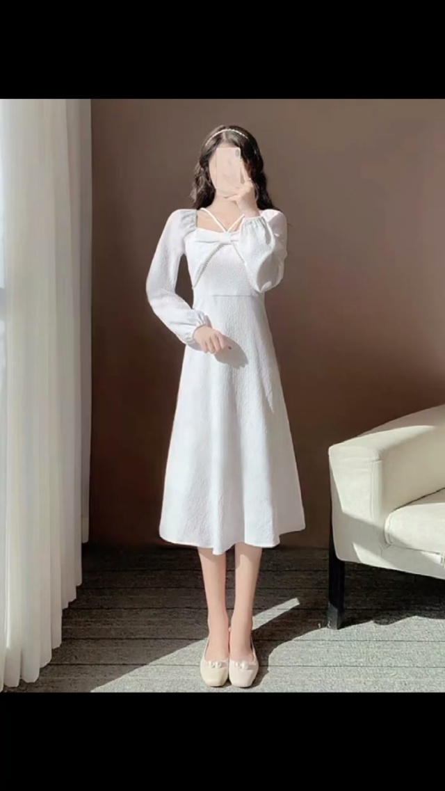 清货价9.8,数量147件左右纯色裹胸款春秋季衩领束带灯笼袖长袖连衣裙尺码S-...