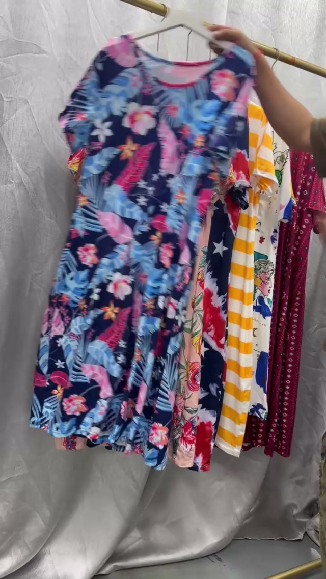 夏季女式宽松多色印花短袖中长款连衣裙.码数S-3XL.数量80件.独立包装.白菜...