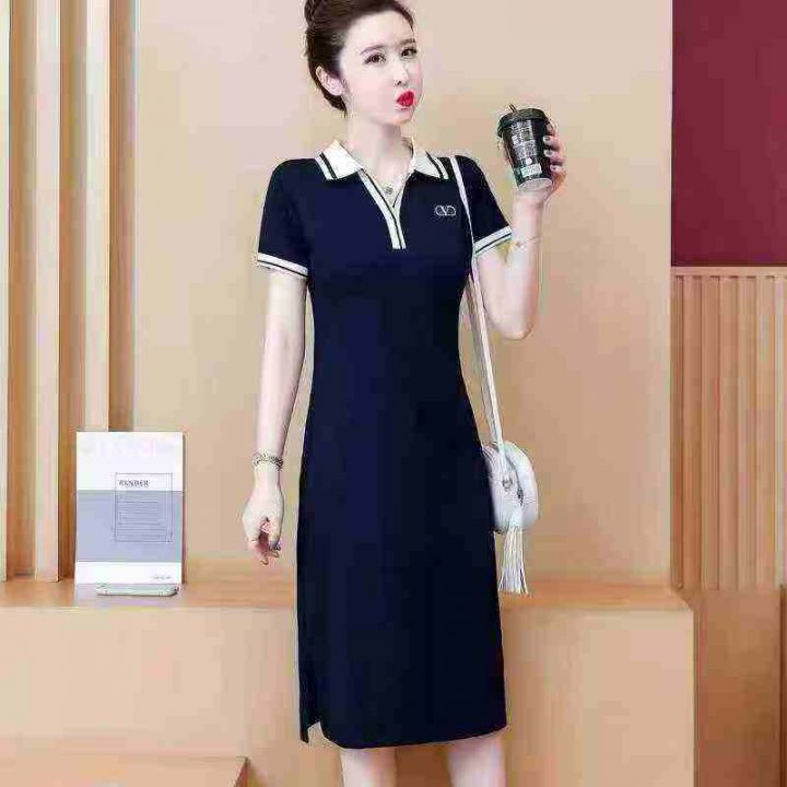 全清7.9polo连衣裙女夏过膝长款直筒T恤裙休闲宽松遮肚子运动连衣裙,码数2-...