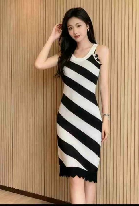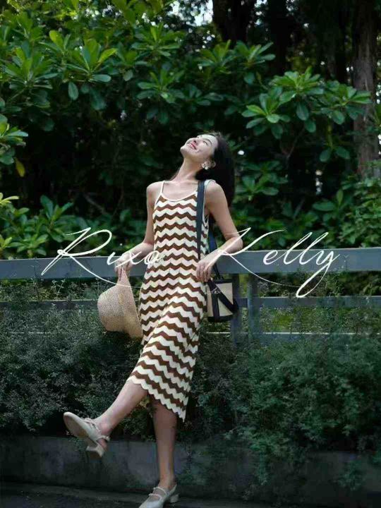 夏季新款高级感条纹性感针织吊带连衣裙,独立包装,均码面料柔软舒适有弹力...