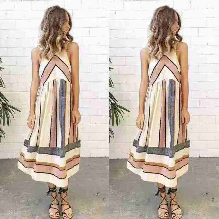 8.8元秒杀[發][發] 时尚印花沙滩休闲百搭中长裙无袖连衣裙,独立包装,码...