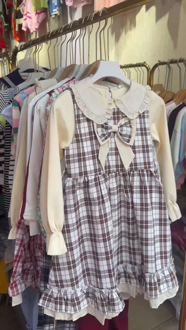 ⭐⭐380件左右外贸中大童长袖格子连衣裙,独立包装,高弹力品质好,120-160...