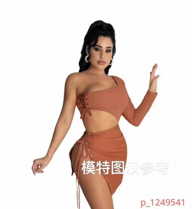 5.5清欧美性感时尚休闲绑带斜肩长袖裙子,整款三色,数量300件左右,码数S-...