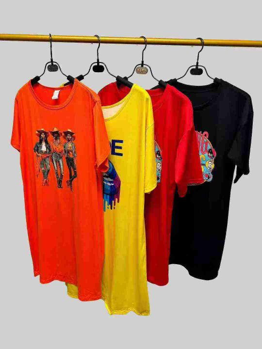 5.8清时尚潮流中长款印花圆领T恤裙,系列款图案不同款式一样,数量:200件...