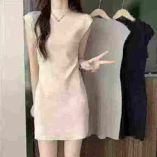 ️全清6.9 夏季女装圆领纯色无袖针织连衣裙,韩版修身显瘦针织连衣裙,一...