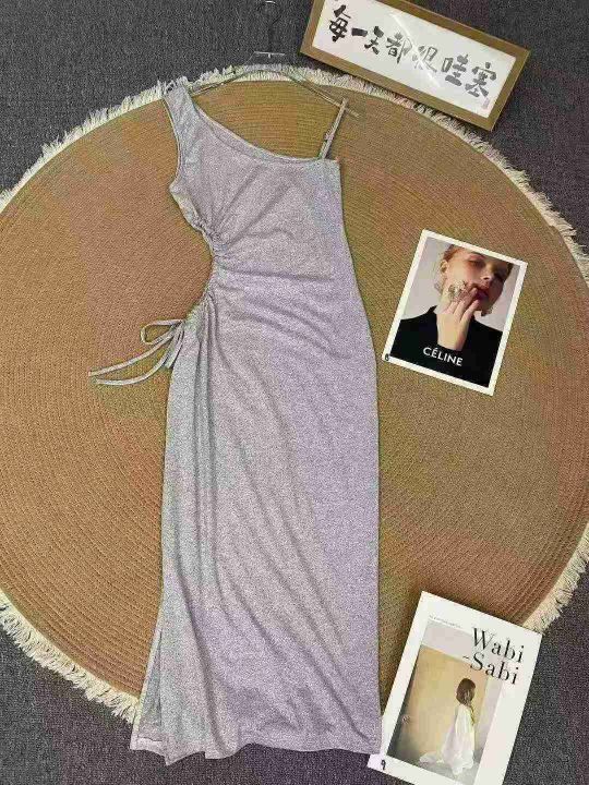 斜肩吊带连衣裙91件6.5,抽褶露腰,下摆开叉设计,肩带可调节,码数3-4码,...