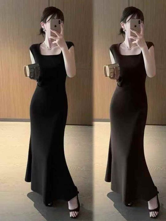 夏季新款高级感黑色波点连衣裙女宽松显瘦无袖气质法式长裙,整款单色,M-L....