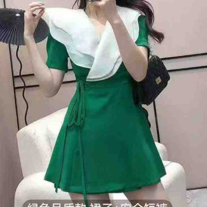 180件韩版假两件小众连衣裙大码夏季新款系设计感收腰显瘦中长裙独立包装 M...