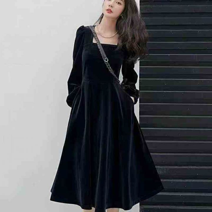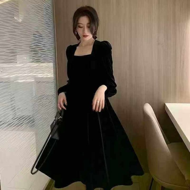 ️226件早秋冬法式小香风小礼服赫本风小黑裙金丝绒秋冬连衣裙,码数M到3XL...