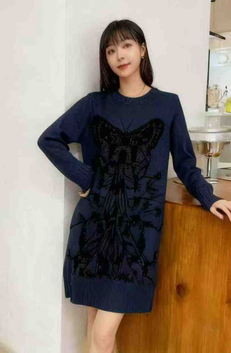 品牌原单重工烫钻提花纯棉圆领针织毛衣连衣裙,独立包装带吊牌,均码宽松版...
