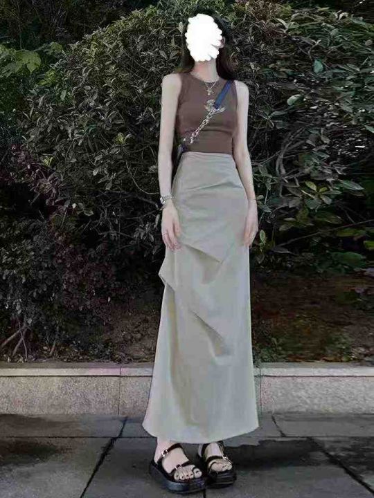 美式欧美工装半身长裙女春夏辣妹褶皱高腰显瘦开叉包臀长裙,数量193件,码...