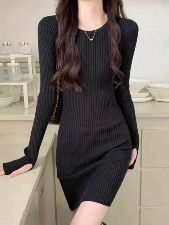 秋冬新款弹力修身显瘦坑条圆领毛衣连衣裙,独立包装,均码面料软糯舒适弹力...