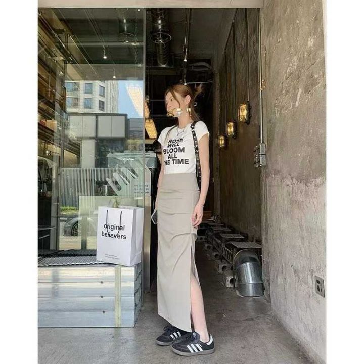 美式欧美工装半身长裙女春夏辣妹褶皱高腰显瘦开叉包臀长裙,数量193件,码...