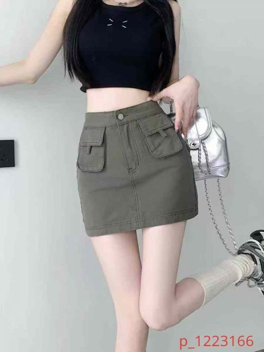 ☕️辣妹军绿色工装牛仔半身裙女美式短裙夏季A字包臀裙裙 407条全清8.8元,...