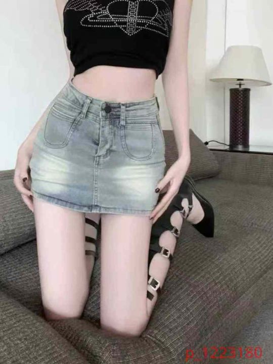 ☕️高弹力复古牛仔半身裙女辣妹裤裙新款高腰显瘦a字包臀短裙200条全清9.9...