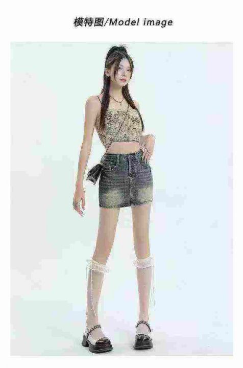 ☕️高弹力美式复古牛仔短裙女新款夏季辣妹显瘦防走光高腰包臀裙半身裙320...