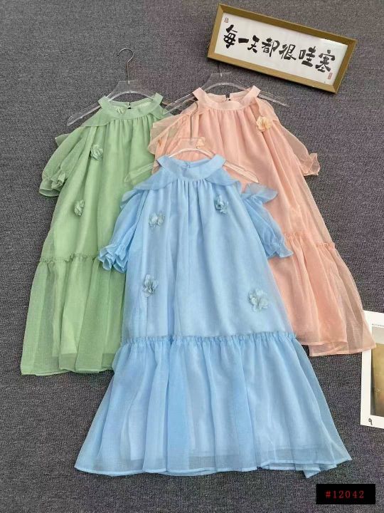 系列款连衣裙41件12.8,面料柔软,法式泡泡袖,有内衬,花朵设计,码数L-XL...