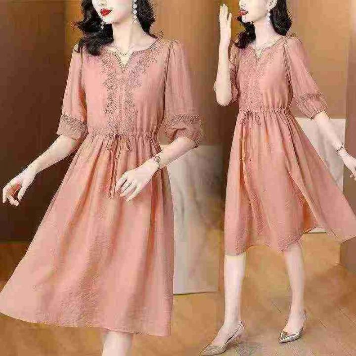 ☕️杭州高品质缎面连衣裙夏季新款中袖气质高端v领短袖中长连衣裙360条全清...