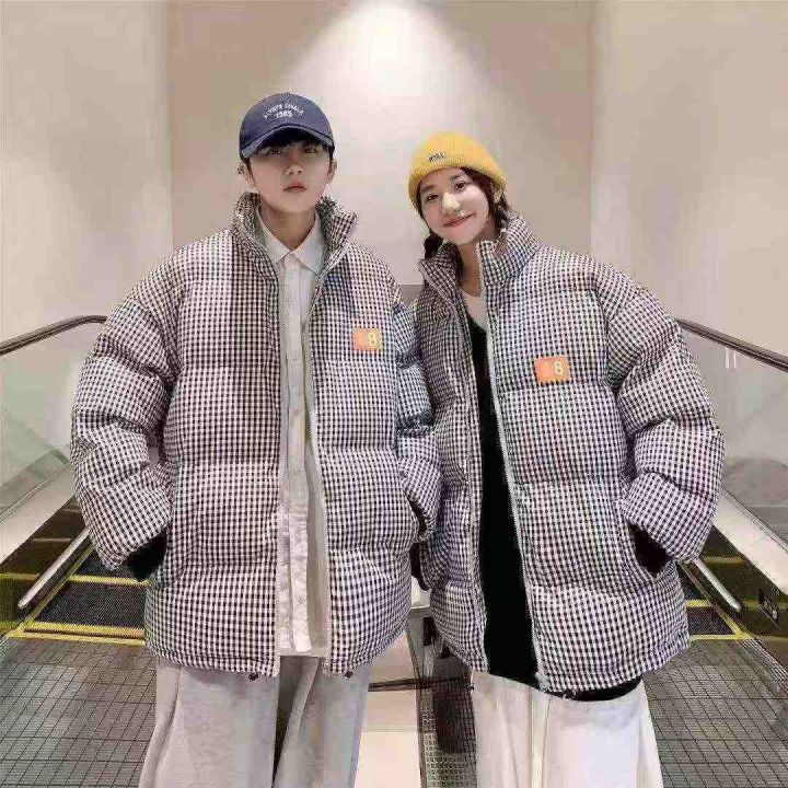 格子情侣装棉服265件18.8,胸前小标,有口袋,宽松版,码数M-2XL,独立包装...
