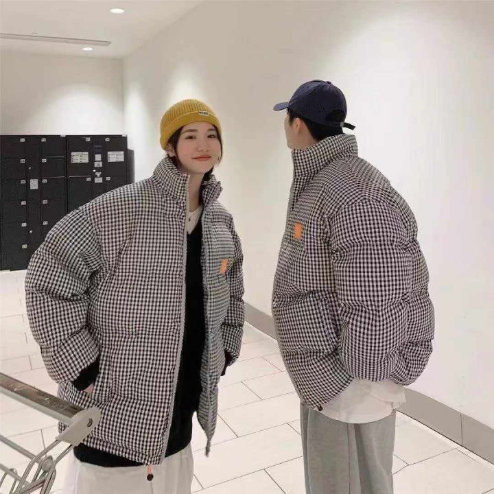 格子情侣装棉服775件18.8,胸前小标,有口袋,宽松版,码数M-2XL,独立包装...