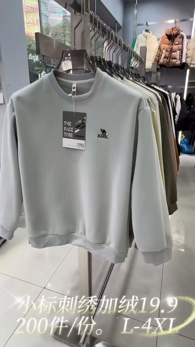 热销小标刺绣加绒特价19.9视频款配货,号码L-4XL200件一份,大份小份也可以...