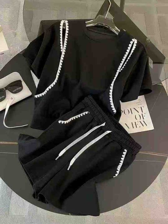 清14.8分货➕12025夏季新款高级感时尚休闲运动套装女设计感短袖短裤两件套...
