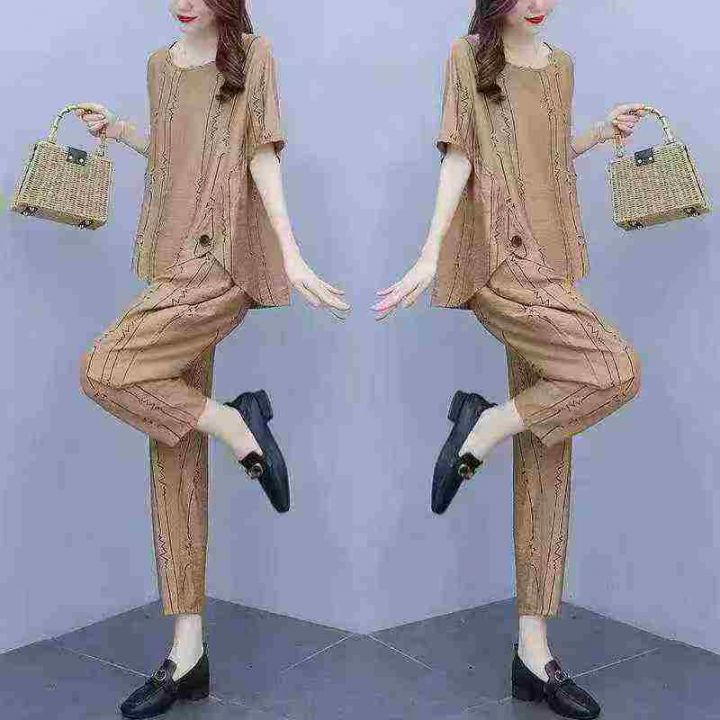全清7.9时尚运动服套装女夏季新款洋气减龄显瘦短袖长裤休闲哈伦裤 数量:78...