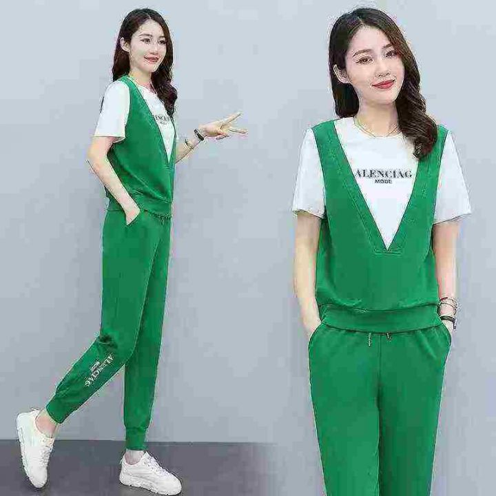 全清7.9时尚运动服套装女夏季新款洋气减龄显瘦短袖长裤休闲哈伦裤 数量:78...