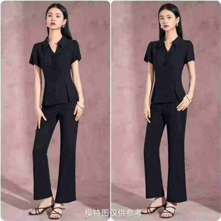 6.8清电商仓回收519套气质国风改良新中式条纹翻领短袖长裤套装,码数2-4-6...