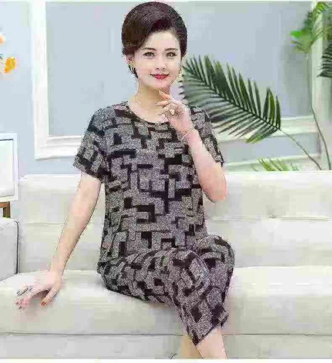 全清价5.9元妈妈夏装套装冰丝亲肤凉快舒服可外穿中老年人女款上衣五分裤两...
