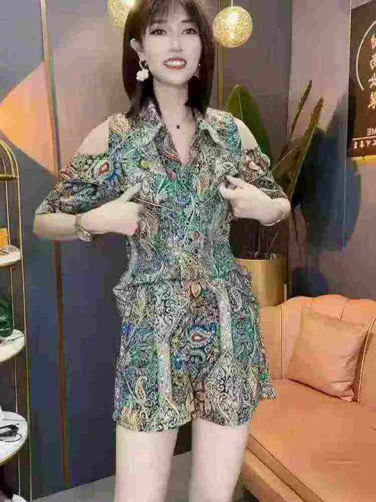 [福]亏本清645套时尚洋气碎花套装/露肩衫前拉链可连体裤套装,码数:1-7码...
