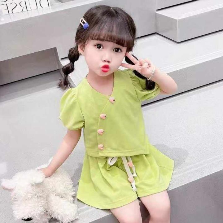 童装华夫格套装73套3.9,华夫格面料,柔软舒适,爱心纽扣,松紧腰阔腿裤,...