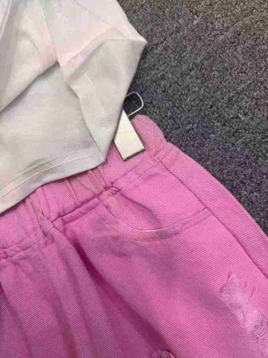新款女童T恤牛仔短裤薄款韩版洋气百搭中大童破洞毛边女孩热裤T恤套装夏,独...