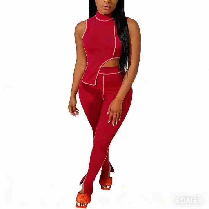 7.5清2077款欧美时尚爆款洋气不规则线条无袖套装,整款多色,数量:733套,...