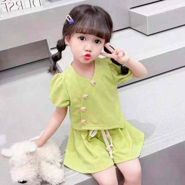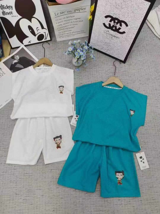 童装华夫格套装942套7.5,华夫格面料,柔软舒适,爱心纽扣,松紧腰阔腿裤,...