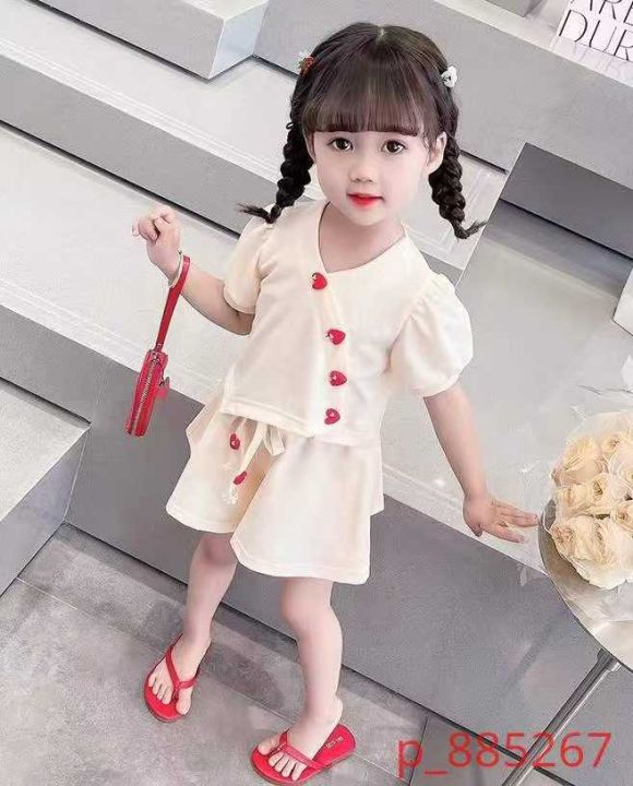 童装华夫格套装942套7.5,华夫格面料,柔软舒适,爱心纽扣,松紧腰阔腿裤,...