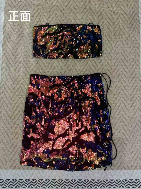 80套左右闪闪亮片性感显瘦抹胸露肩一字领露裹胸式套装!质量很好!尺码S-L...