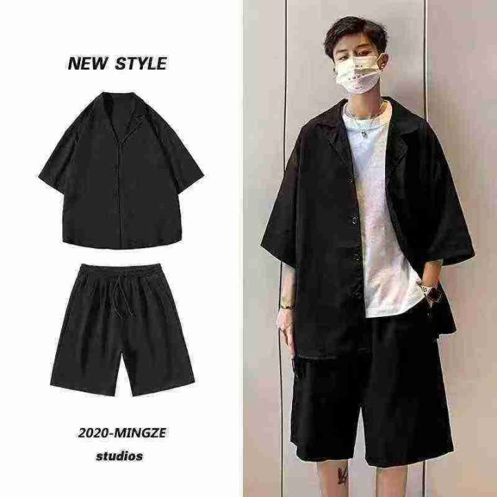 男装宽松新款休闲中裤港味ins潮运动套装,M-L码,黑色多,120套,全部独立...