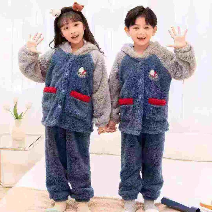 [月亮]:16.8清161套/分货➕1[月亮]:潮童中大童法兰绒连帽纽扣开衫套装[月...