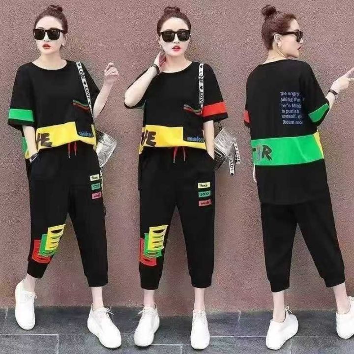 大码女装休闲运动服套装女夏宽松新款短袖短裤两件套,整款多色,M-4XL码,...