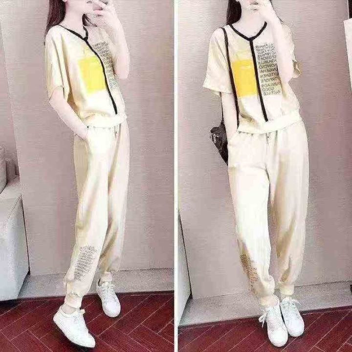 清7.8元/套夏季薄款通勤百搭宽松短袖长裤套装,900套左右,后领包边,码数X...
