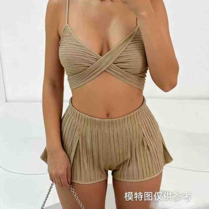 4.5清电商仓回收420件外贸热卖辣妹高级感褶皱绑带吊带短裤套装,码数s-m,...
