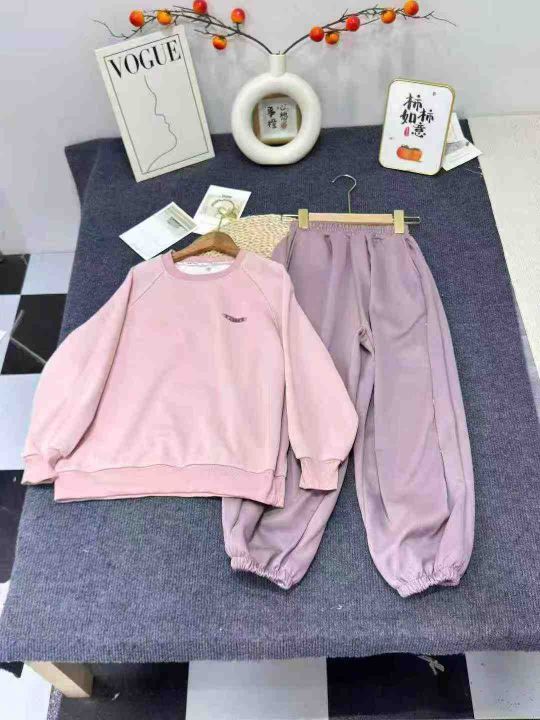 米妮哈鲁女童春秋季韩系卫衣套装2025新款女大童洋气上衣卫裤两件,其中连帽...